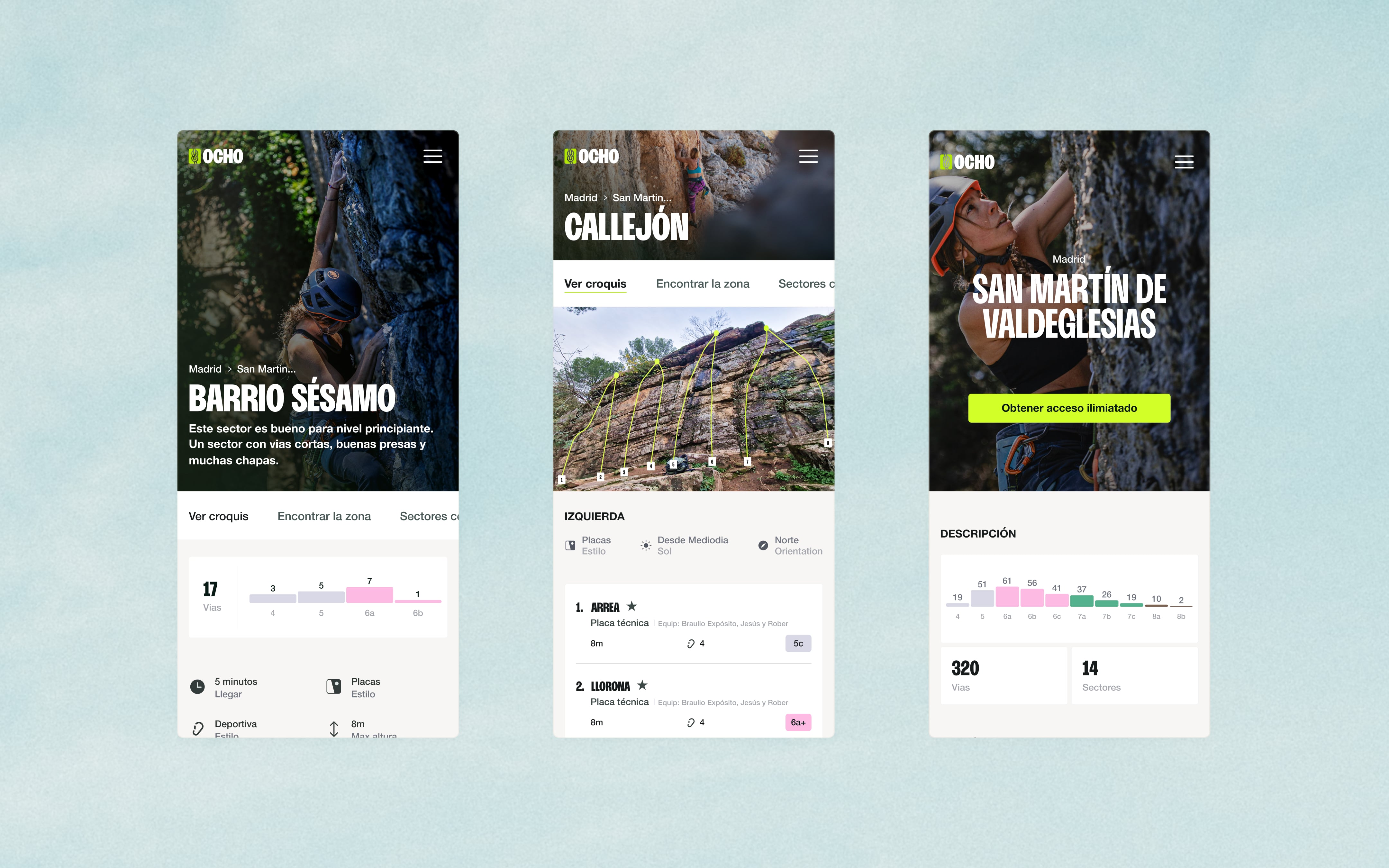The guide experience in your pocket, Ocho is an online guide working to create a better experience for both developers and climbers.